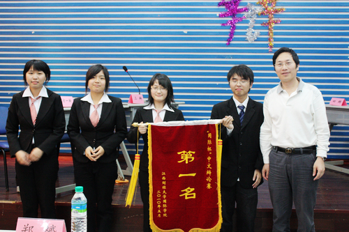 最后,经过评委的认真商讨,09国金3赢得了胜利,而最佳辩手的称号由09国会2班的刘点方子获得。 这样一场没有硝烟的战争,两方辩手展示出了出色的语言组织能力和良好的逻辑思维能力,让全场观众享受了一场视听盛宴。