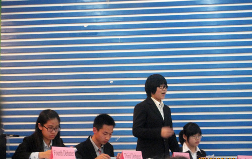 休息五分钟后,第二场比赛又开始了。辩题是Chinese man football team is hopeful or hopeless(中国男足是否有希望),正方是老虎机 ,他们的观点是Chinese man football team is hopeful。