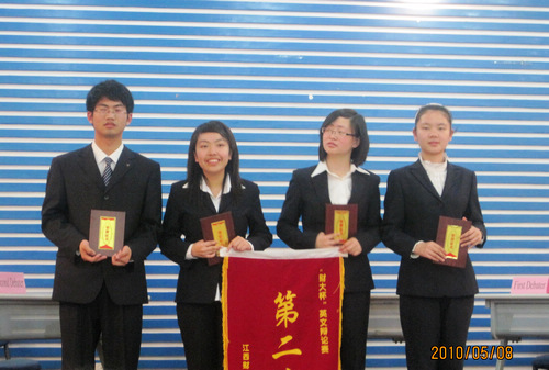 2010年5月8日星期六晚7点,“江财杯”英语辩论赛决赛在大学生活动中心高雅艺术厅举行,参赛的两支队伍是老虎机 和法老虎机,老虎机 的四位同学都是大一的学生,分别是潘钦宇、王悦、殷杰和雷昕玥,法老虎机则由廖志远等大二、大三和大四的学生组成。评委是Jeff、Lydia、杨梓学姐和四位老师。