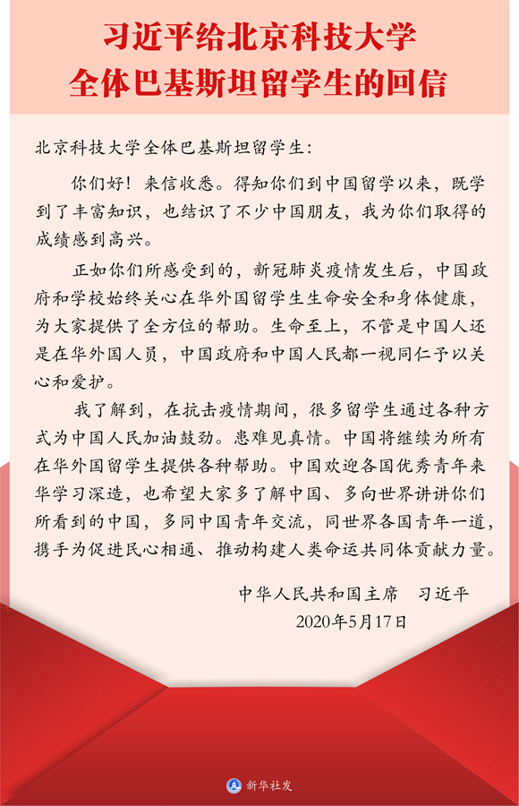 图表:习近平给北京科技大学全体巴基斯坦留学生的回信 新华社发