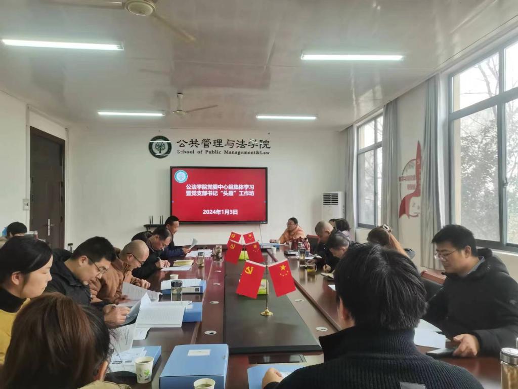 在学院402会议室召开党委理论学习中心组2024年第1次学习(扩大)会暨党支部书记“头雁”工作坊,学院领导班子成员、党委委员、纪委委员、各党支部书记、组织员、系(室)负责人、办公室工作人员及学生代表参加了学习及活动,学院党委书记胡正友主持活动。