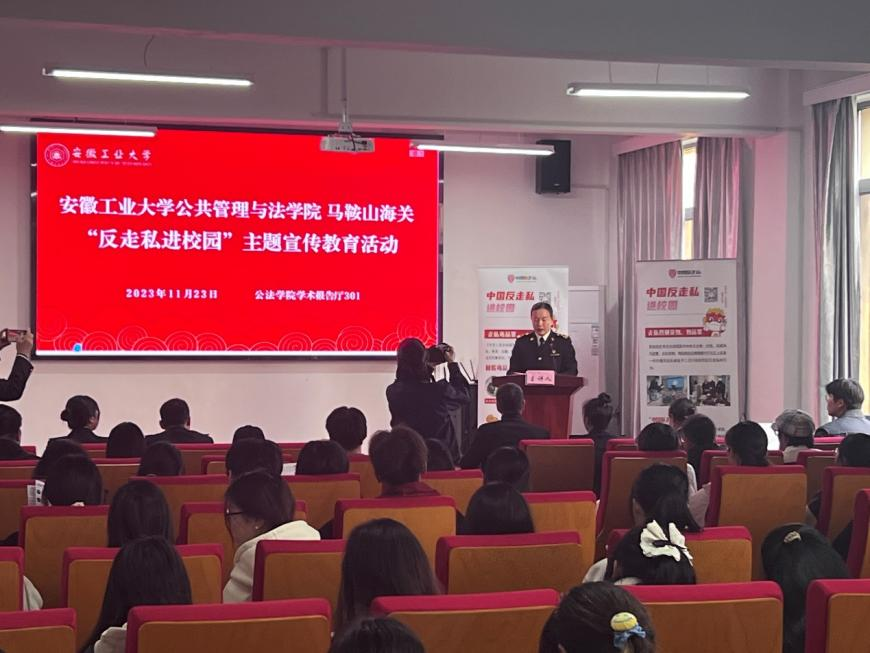 、马鞍山海关在公法楼学术会议中心联合举办“反走私进校园”主题宣传教育活动,守护“无私”的青春。马鞍山海关副关长吴钧、公法学院团委负责人、公法学院师生100余人出席活动。本次活动由老虎机