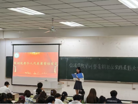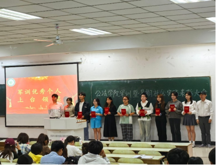 公法学院党委副书记周浩然指出,2024级新生军训是落实立德树人和强军目标的根本要求,通过严格的纪律要求与系统化的技能培训,能够培养参训人员的责任感、集体荣誉感及应对挑战的能力。暑期社会实践是全面落实习近平总书记五四青年节对全国广大青年重要寄语精神,积极推动“大思政课”建设落细落实的重要途径,能够帮助团员和青年在社会实践中“受教育、长才干、做贡献”。诸多实践队伍用实际行动践行了理论与实践相结合的理念,增长知识,锤炼能力,更在合作中收获了珍贵的友谊,深刻理解团队力量并提升了团队协作的能力。周浩然指出,2024年公法学院共组建46支队伍奔赴全国各地开展暑期社会实践,其中国家级队伍4支、校院级队伍3支、学生自主队伍39支,举办宣讲40余场次,地方培训400余人次,累计发稿1436篇,展示了公法学子在助力社会主义现代化建设、投身乡村振兴、用脚步丈量祖国大地的青春力量。会后,周浩然为暑期社会实践优秀团队代表、暑期实践优秀个人颁发证书。