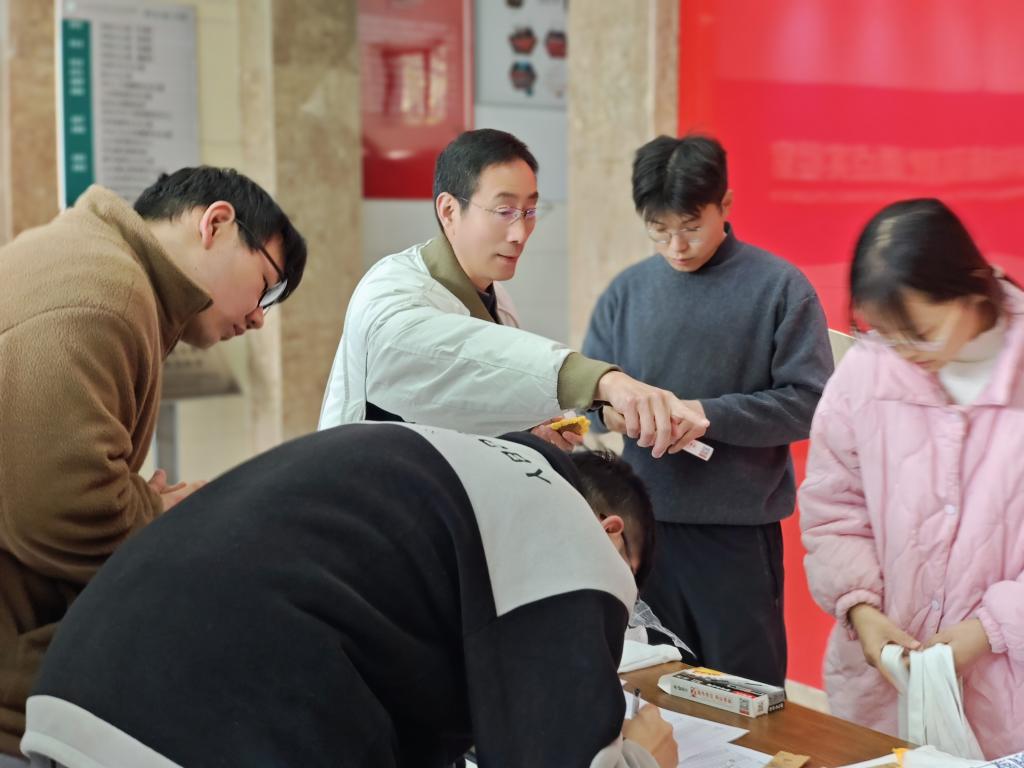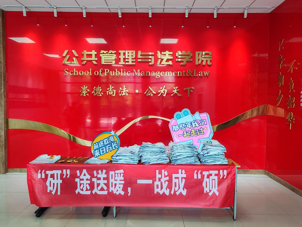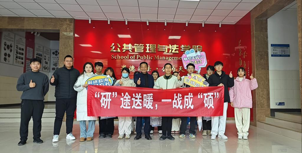 举办“研”途送暖,一战成“硕”活动。学院党委书记胡正友、党委副书记、学生工作副院长、纪委书记周浩然和各年级辅导员来到活动现场,为考生发放考研暖心礼包,并为各位备考学子送上美好的祝福。