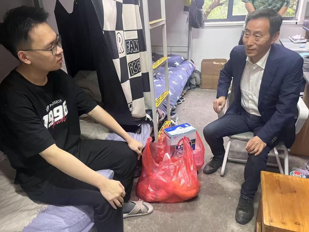 2025年5月24日,学院党委副书记、纪委书记、学生工作副院长周浩然携2023级辅导员专程前往学生宿舍看望造血干细胞捐献志愿者、2023级法学专业法231班潘旭辉同学,对其无私奉献、挽救生命的善举表达高度赞扬与深切关怀。