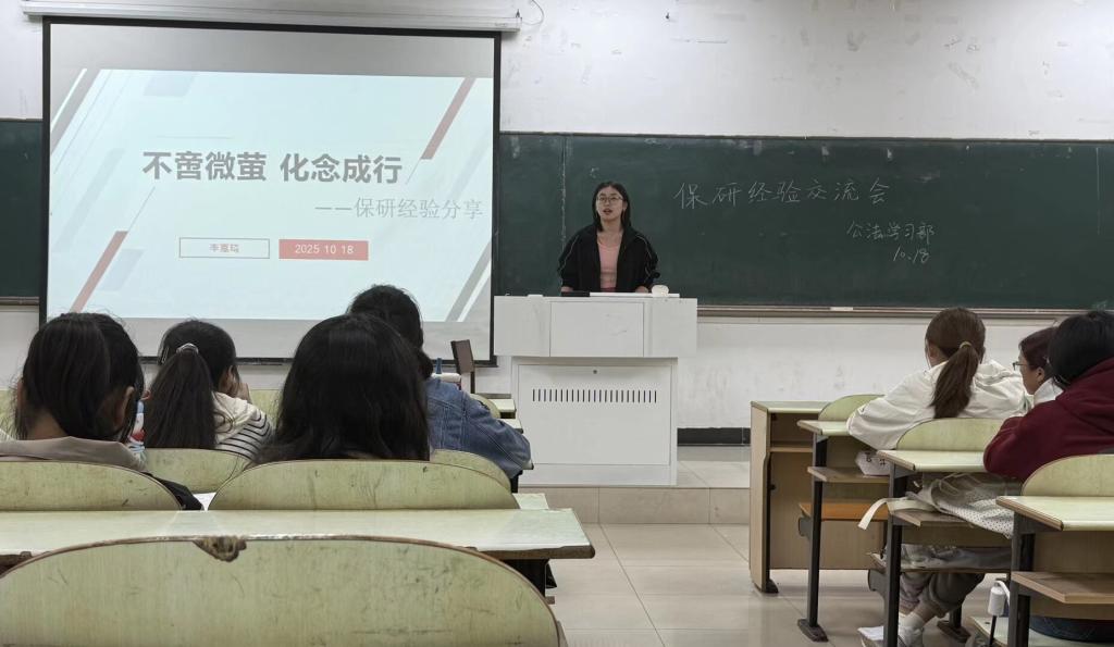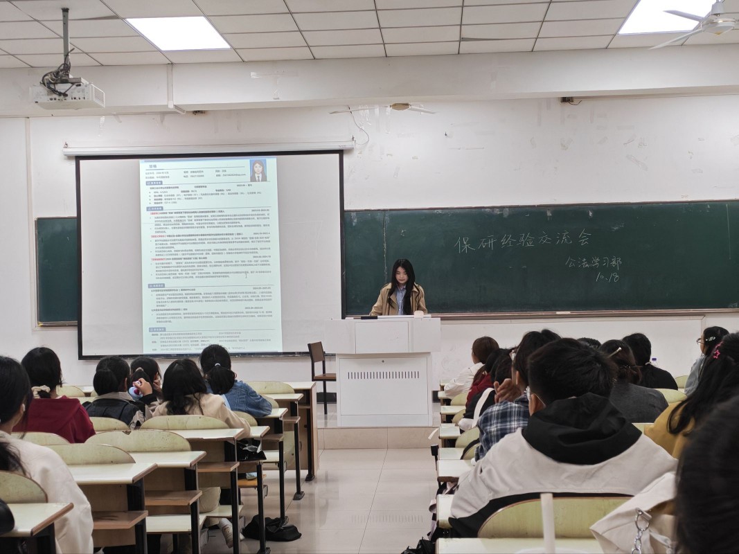 为帮助学子深入了解保研政策,掌握保研备考技巧,10月18日晚,公法学院学习部于教三南103举办了保研经验交流会。本次活动邀请邹畅、陈雨彤、陈慧敏、周乐雅、邢禹阳、李嘉琦作为优秀代表分享经验,公法学院学生参加讲座。