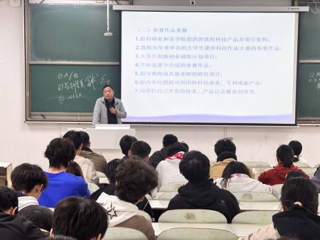 宣讲环节中,钱前围绕“挑战杯”赛事的重要性展开介绍,并详细讲解了赛事流程。参与学生表示,通过讲解明晰了从选题到最终答辩的全流程步骤,对赛事形成了基本构思。宫仁贵则聚焦商业计划书的结构、核心内容及撰写注意事项进行了系统阐释。李嘉琦结合自身参赛经历,从PPT封面设计、计划书组成部分梳理到汇报答辩技巧等维度,分享了备赛经验,鼓励同学们在细节处不断优化、提升备赛效率。活动现场秩序井然,同学们聚精会神,用心倾听。