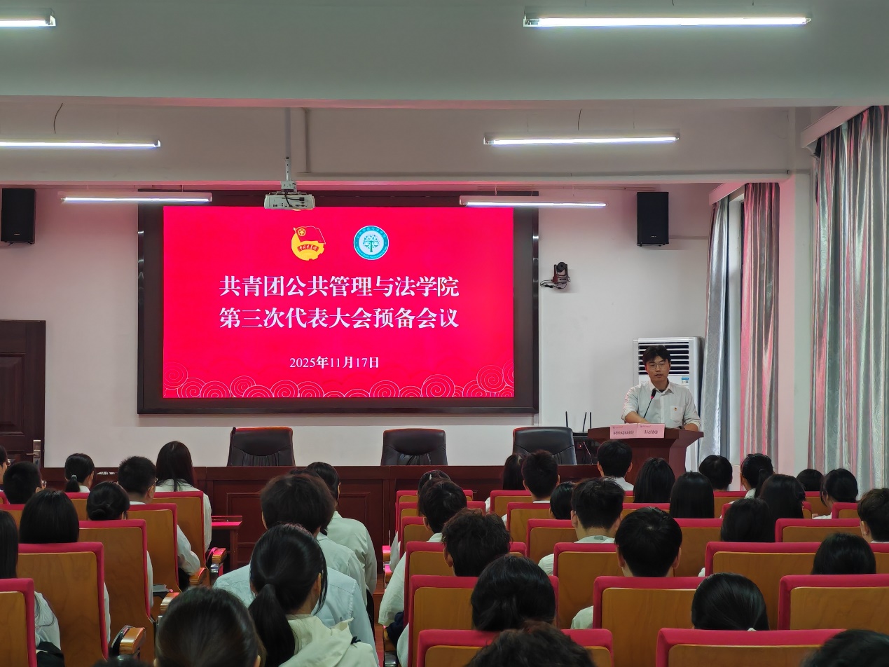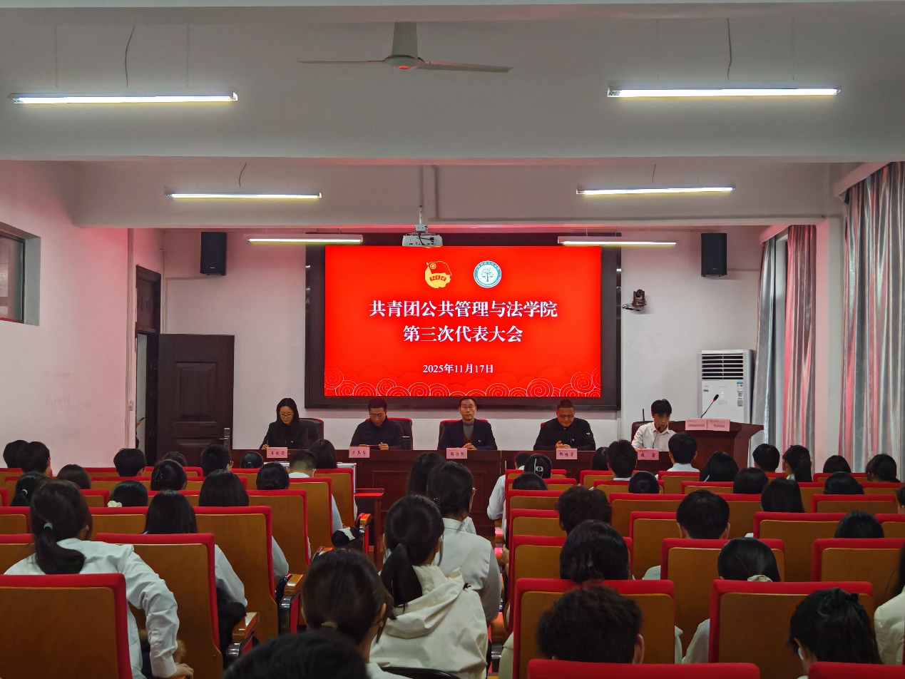 第三次代表大会于2025年11月17日下午,在公法楼学术会议中心301隆重举行。公法学院党委书记、纪委书记、学工副院长周浩然,研究生辅导员产兵华,2022级本科生辅导员邢维迢,2025级本科生辅导员王秋丽出席大会,会议由团学负责人钱前主持。全体共青团员代表与学生代表齐聚一堂,共绘学院团学工作高质量发展新蓝图。
