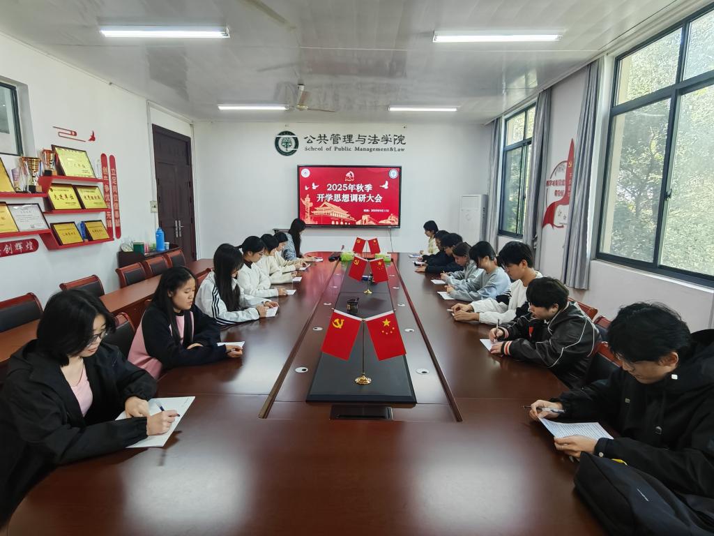 为精准把握学生思想动态,凝聚青年成长共识。9月13日,公法学院2025年秋季开学思想调研大会在公法楼402顺利召开。会议邀请了各年级代表、党员代表和新疆等少数民族学生代表参加,同学们积极参与并就多个议题展开了深入讨论。