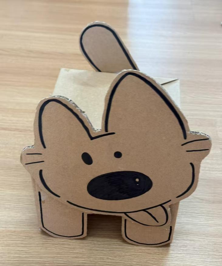 (图为利用废弃纸板改造成小动物)