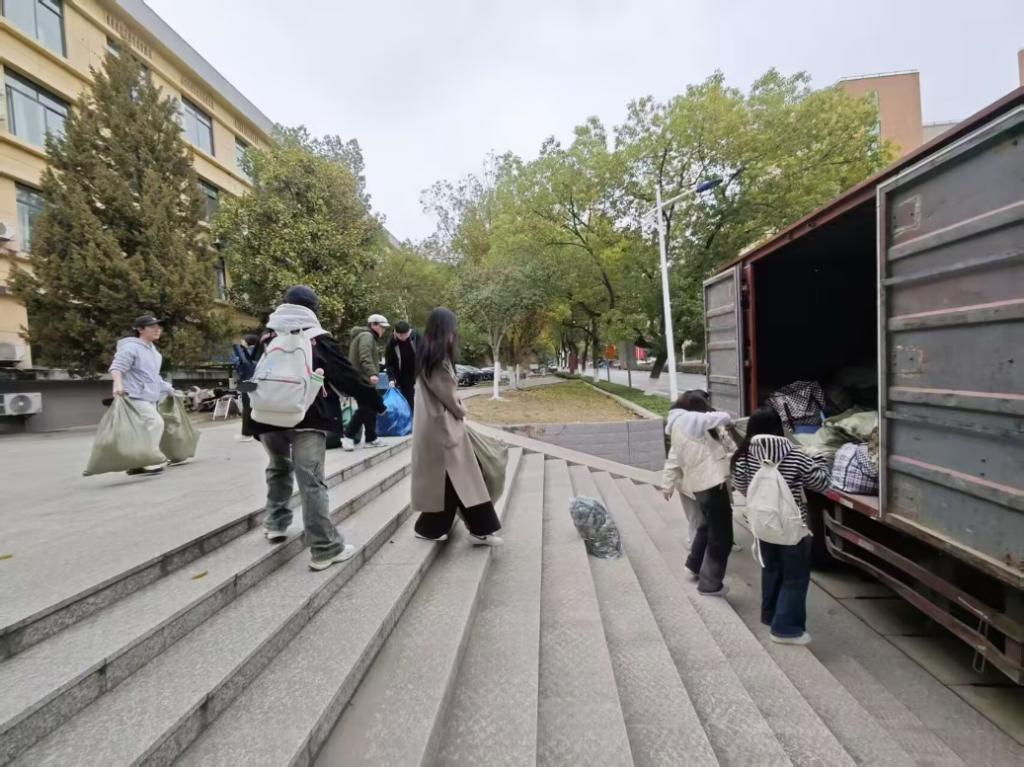 青年志愿者协会于12月5日组织开展“迷彩传情,爱心捐赠”军训服捐赠活动,号召同学们将闲置军训服捐赠出来,转化为帮扶村村民的实用物资,传递温暖关怀。