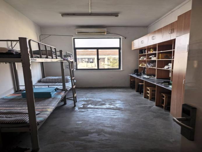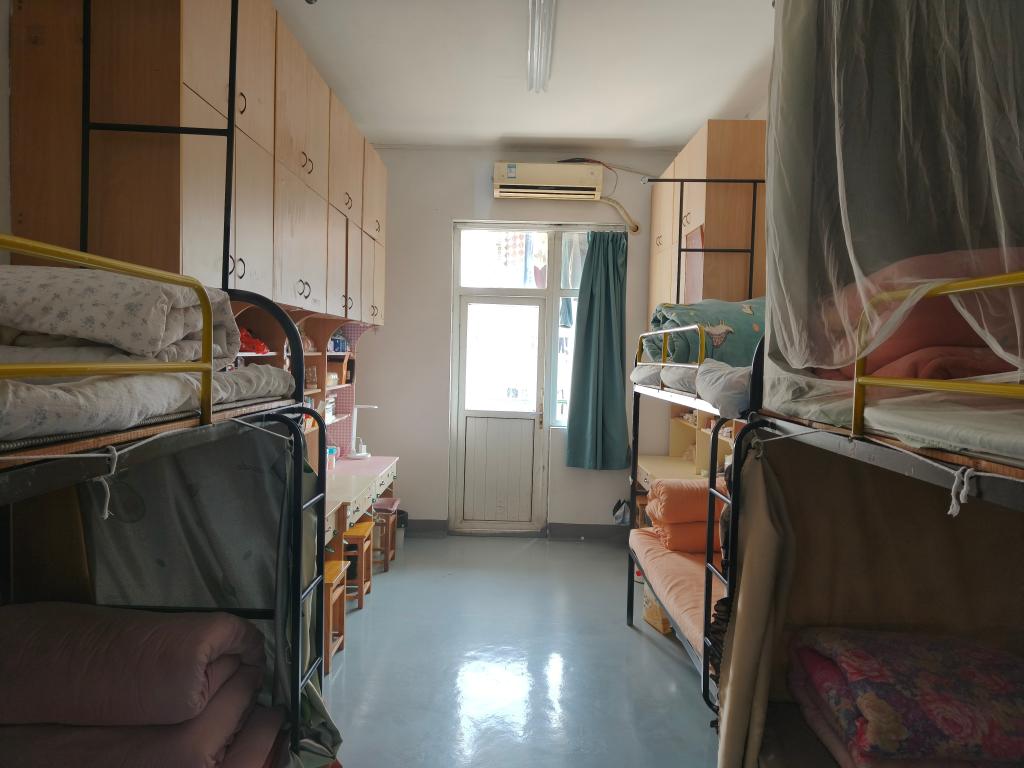 (图为工作人员进入寝室打分)