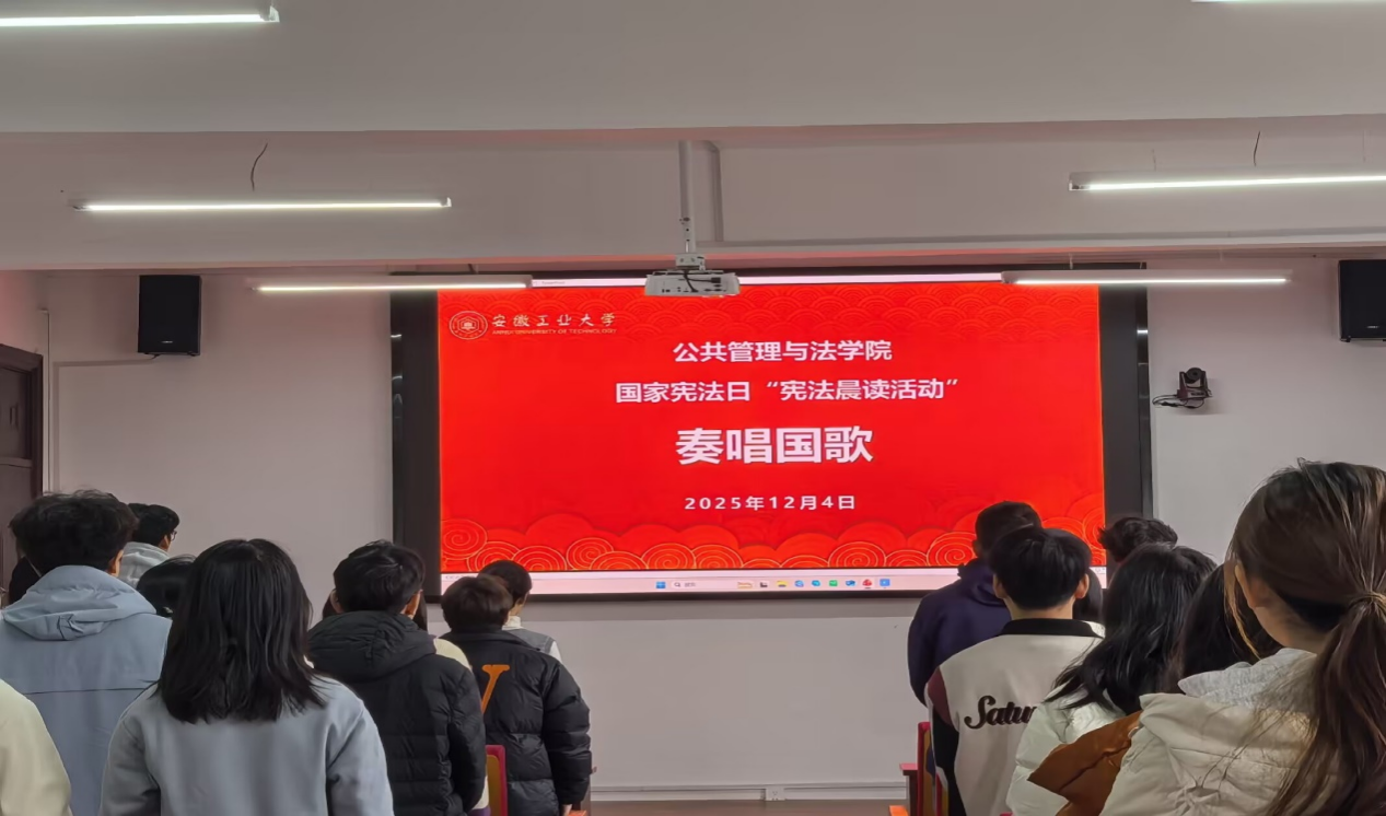 主持人现场阐释国家宪法日的起源与核心内涵,明确本次活动以歌曲传唱为载体弘扬宪法精神、培育学子法治素养的核心宗旨。全体同学面向国旗肃立,伴随激昂雄壮的《义勇军进行曲》,齐声高唱国歌。