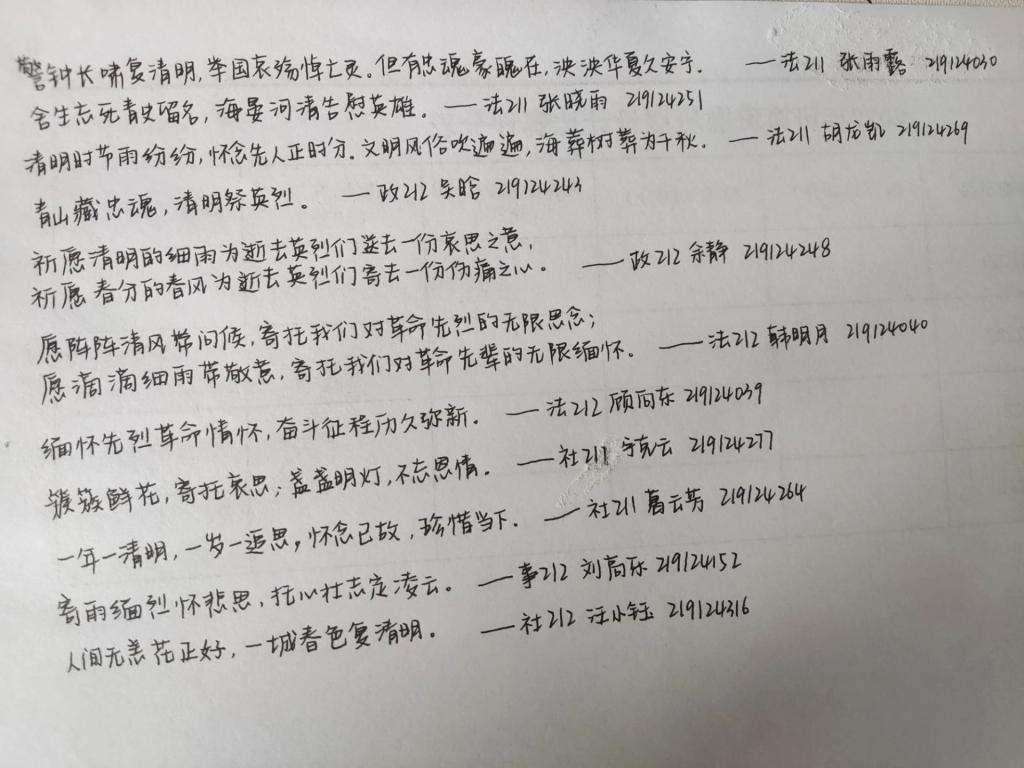 此次活动以“清明时节,寄语相思”为主题,以班级为单位,由各班宣传委员积极动员学生撰写寄语并统一收集,最终精选优秀寄语进行展示: