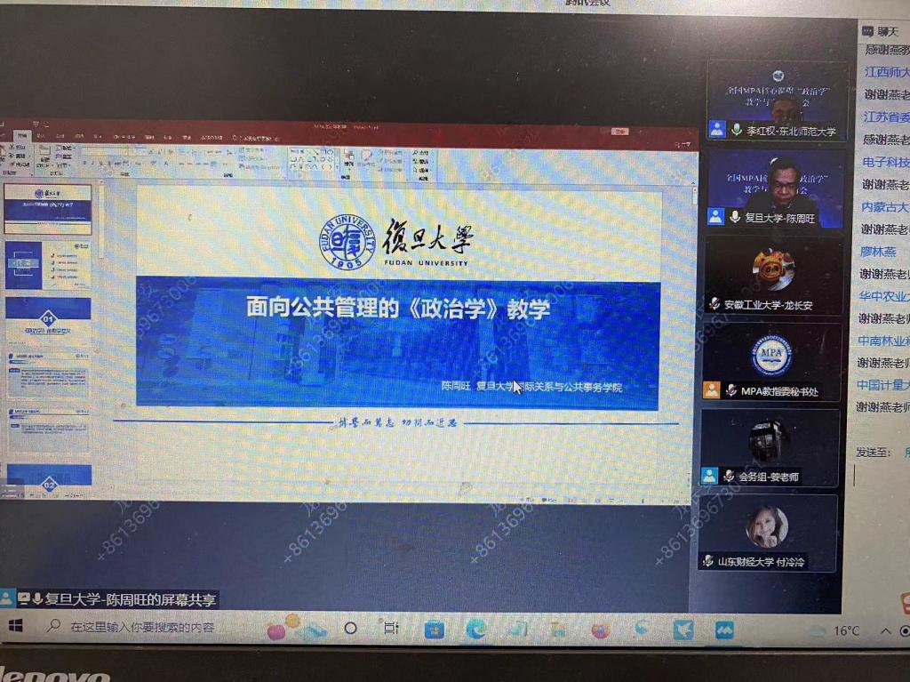 全国近百所高校160多位政治学相关老师及研究人员参加了此次会议,大家就“政治学理论热点话题”、“MPA政治学原理课程思政”、“政治学原理案例教学”、“MPA政治学原理授课重点及难点问题”等话题展开交流、研讨。此次研讨会对于政治学任课老师把握理论前沿、提升教学效果、探索课程思政起到了重要促进作用。