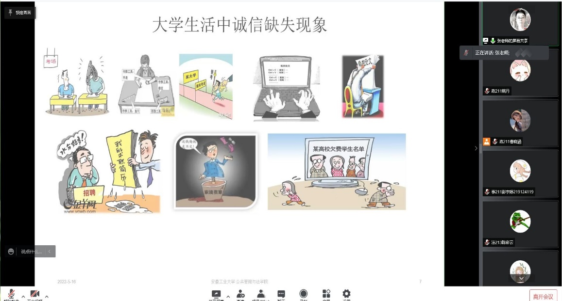 讲座中,张老师充分发挥自身专业所长,就金融诚信的概念、如何防范金融诈骗、完善个人征信的重要性等诚信金融相关知识为同学们进行讲解。“对于学生,学习的考试如果挂科,有重修的机会;诚信的考试,一旦行差踏错,想要弥补却是难上加难”。张老师告诫同学们要维护好个人金融安全,守护好自我诚信底线。最后,张老师就同学们比较关心的诚信金融方面的问题进行了互动问答。