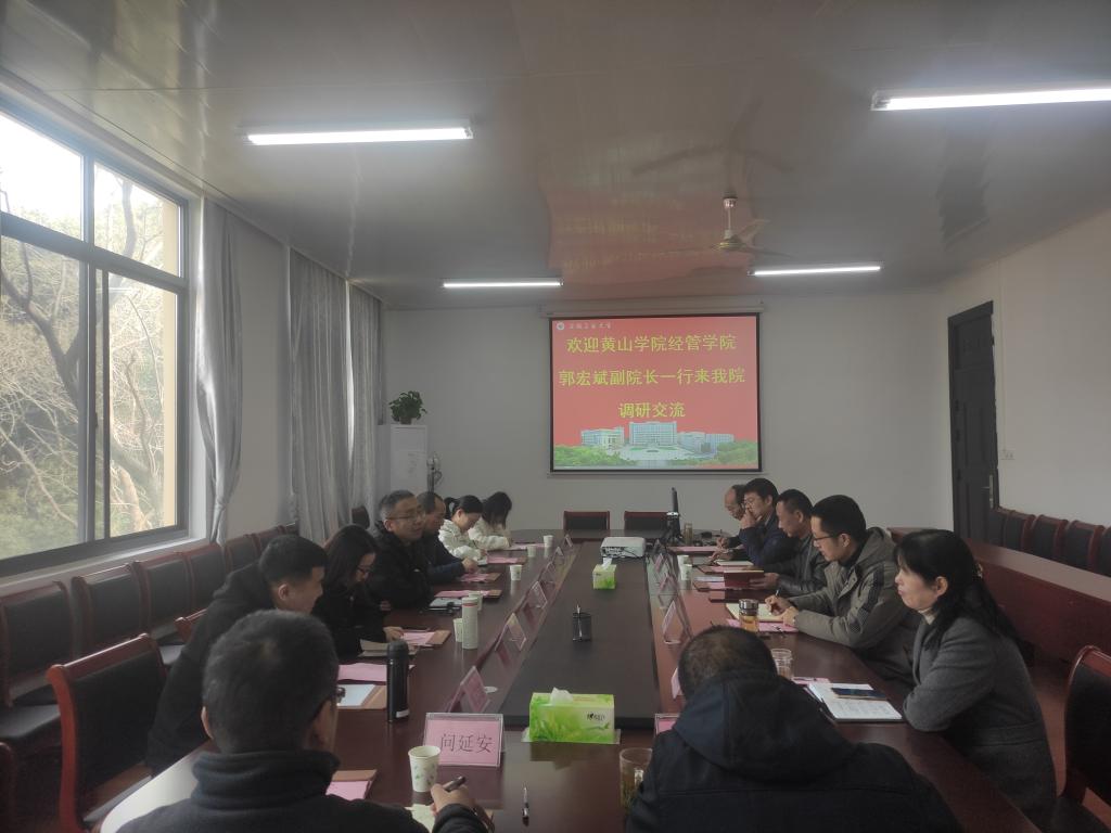 3月2日上午,黄山学院经济管理学院副院长郭宏斌一行六人来老虎机