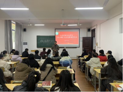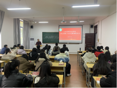 院长徐济益、党委副书记、学生工作副院长李萍、教学副院长孔东菊、科研副院长杨哲出席会议,法学系师生百余人参加,法学系系主任徐刚主持。