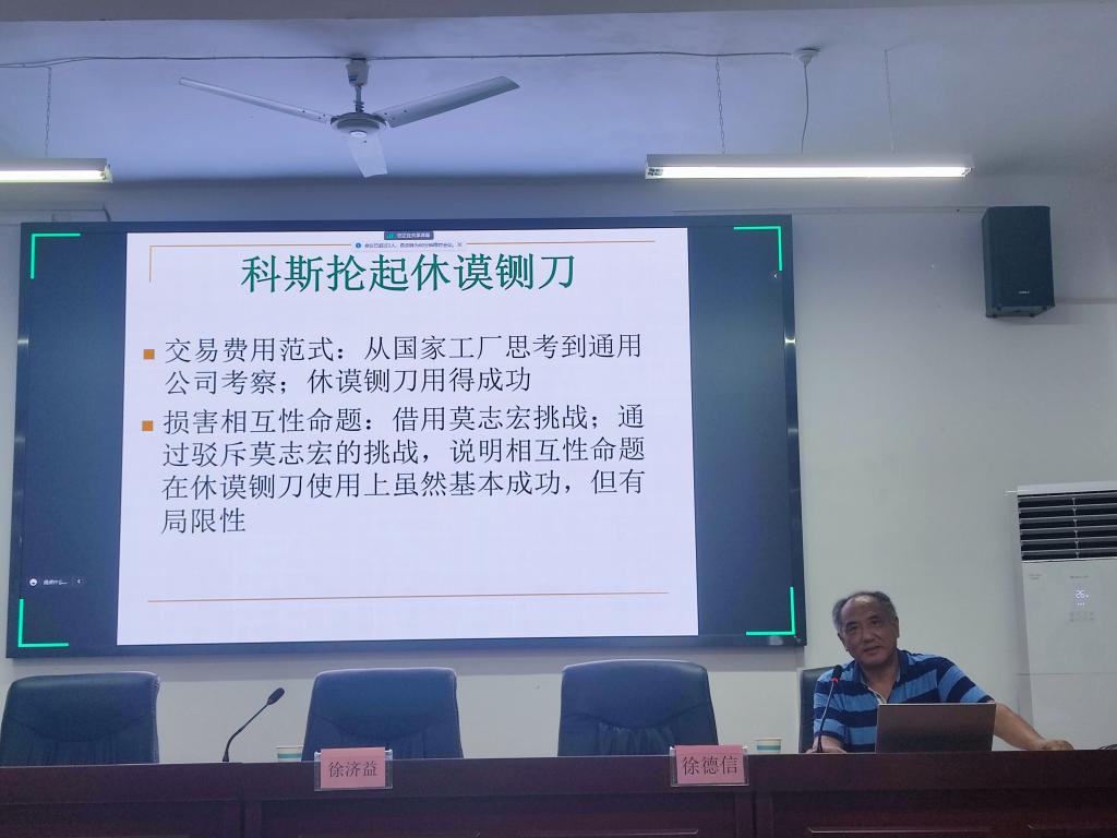 在学术报告会上,徐德信教授以《科斯困惑的经济学解释》为题,从“科斯与中国”、“科斯经济思想的中国研究与现状”、“科斯困惑的理论分析”、“科斯困惑的案例解析——《广告与言论自由》”以及“研究结论与现实意义”等五个方面,为老虎机