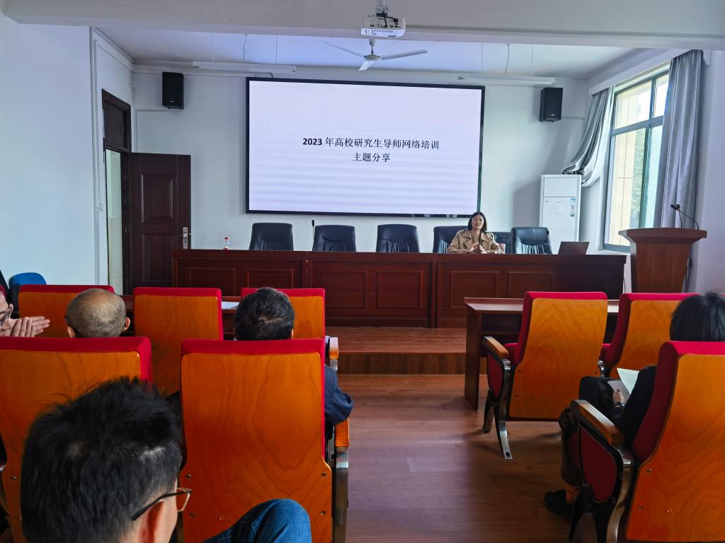 公法楼301报告厅,学院参加国家教育行政学院的2023年研究生培训的邓可祝、杨喜、焦芳芳三位老师就特定的主题依次进行了分享,研究生导师参加了分享会。