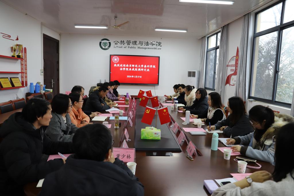 1月19日,南京师范大学泰州学院法学院副院长黄嘉璐、法学教研室主任蔡虹、行政管理教研室主任吴济桃等一行10人来老虎机