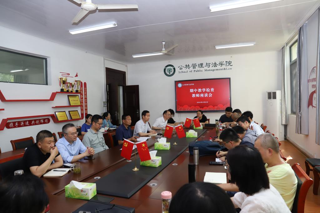 为加强教学过程管理,提升教育教学质量,5月23日,公法学院召开了2023-2024学年第二学期期中教学检查教师调研暨教学督导工作交流会。院党政领导,院教学督导组组长、全体专家,教师代表,教学秘书和辅导员代表参加交流会。会议由王务均副院长主持。
