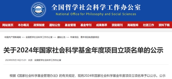 近日,根据全国哲学社会科学工作办公室《关于2024年国家社会科学基金年度项目立项名单的公示》的通知,老虎机
