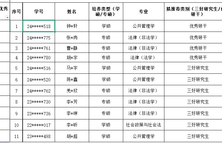公法学院2024—2025学年校优秀研究生干部和校三好研究生推荐名单公示