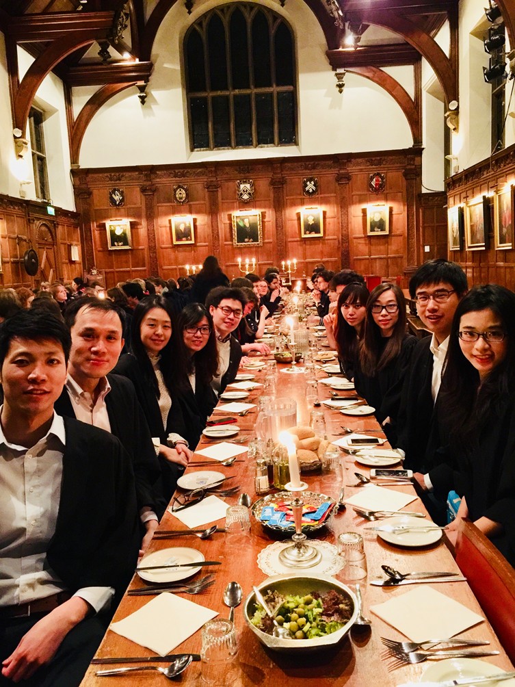 One of my favourite traditions is the formal dinner, which is a three-course dinner where students must wear gowns; senior members in the colleges sit on the high tables.  Mobile phones are prohibited during formal dinners and students are seated mainly with people whom they do not know, with the intention to allow students to mingle with people from different courses and broaden their knowledge and networks to new areas. For example, I met PhD students in Theology, Biochemistry, and Politics and former officers in the Japanese Ministry of Finance.